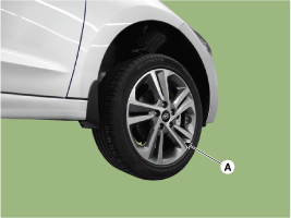Снимите переднее колесо и шину (А) с передней ступицы.