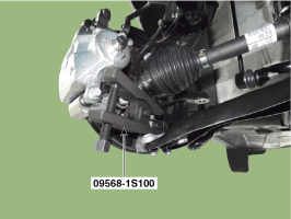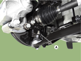 Ослабьте гайку нижнего рычага (A) и снимите шаровой шарнир нижнего рычага с помощью SST (09568-1S100).