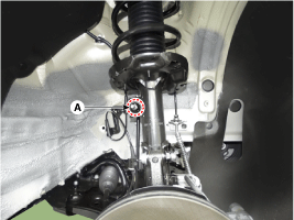 Отсоедините стойку стабилизатора от передней стойки в сборе после ослабления гайки (А).