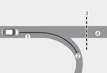 [3] : Кривой участок дороги, [4] : Главная дорога