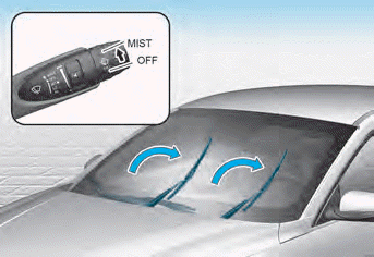1. В течение 20 секунд после выключения двигатель, поднимите и удерживайте рычаг стеклоочистителя до положения MIST примерно на 2 секунд, пока дворники не переместятся в верхнее положение салфетки.