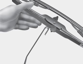2. Поднимите зажим щетки стеклоочистителя. Затем потяните вниз по узлу лезвия и снимите это.