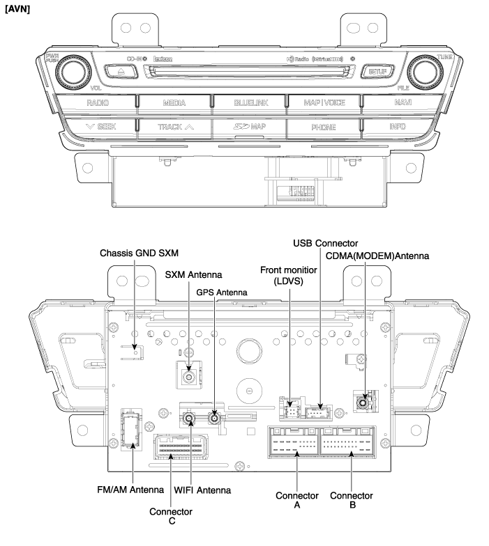 Hyundai Genesis: Система AVN / Головное устройство AVN (аудио-видео-навигация) Компоненты и расположение компонентов