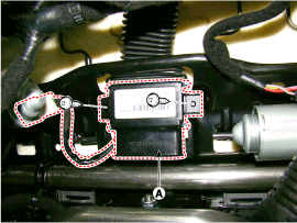Снимите вентилятор (А), предварительно отсоединив фиксирующие зажимы и крепежный зажим от подушки переднего сиденья.