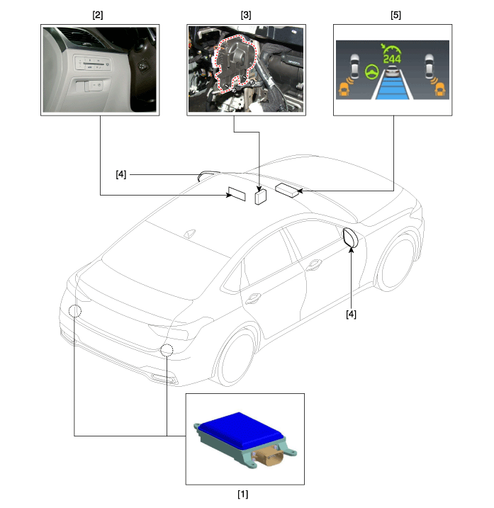 Hyundai Genesis: система обнаружения слепых зон / Компоненты и расположение компонентов