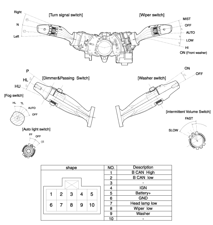 Hyundai Genesis: многофункциональный переключатель / Компоненты и расположение компонентов