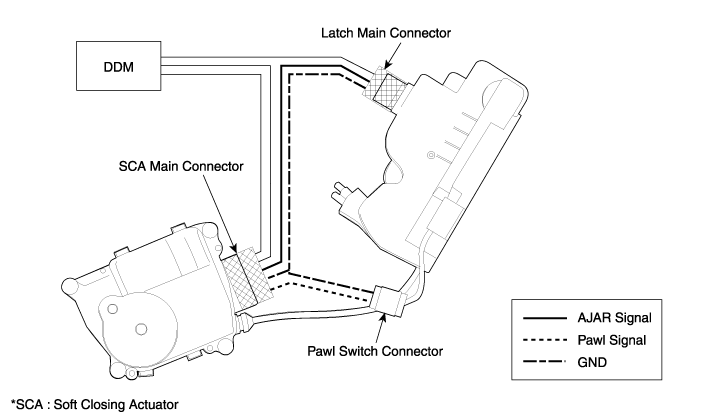 ЭБУ управляет SCA, контролируя положение переключателей приоткрытого положения и защелки, а также