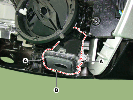 Снимите держатель зеркала (А) с наружного зеркала в сборе.