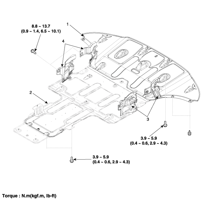 3,9 ~ 5,9 Н·м (0,4 ~ 0,6 кгс·м, 2,9 ~ 4,3 фунт-фут)