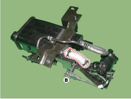 Снимите воздушный фильтр топливного бака после отсоединения парового шланга (B).