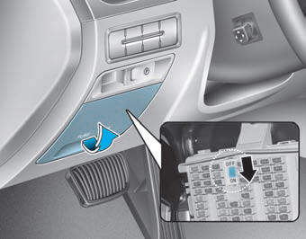 3. Откройте крышку панели предохранителей.