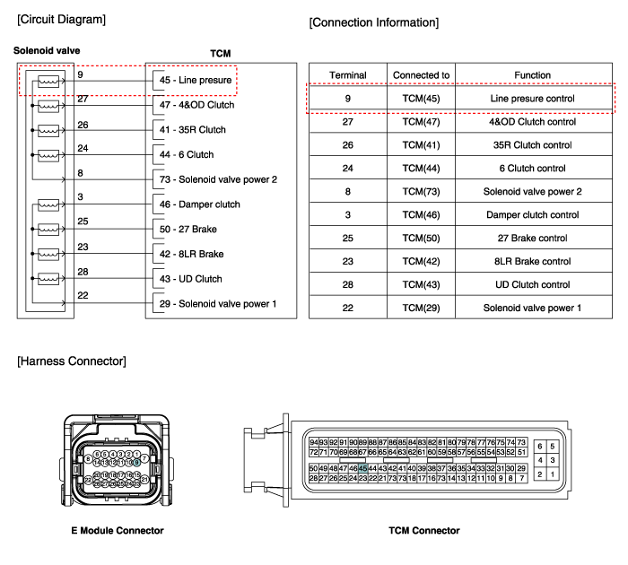 Hyundai Genesis: схематические схемы системы управления автоматической коробкой передач / электромагнитного клапана управления давлением в трубопроводе