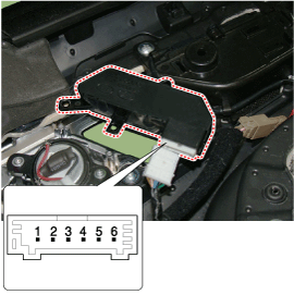 Отсоедините отрицательную (-) клемму аккумуляторной батареи.