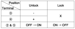 Проверьте целостность цепи между клеммами в полузамкнутом состоянии в соответствии с таблицей.