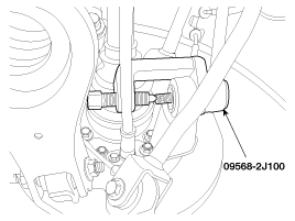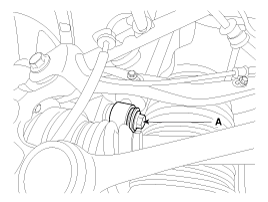 Ослабьте крепежную гайку и снимите вспомогательный рычаг (A) с помощью SST (09568-2J100).