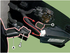 Снимите крышку проводки зеркала (А) и крышку датчика дождя (В).