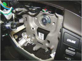 Отсоедините разъем и стопорный болт (А), затем снимите рулевое колесо с помощью специального сервисного инструмента (09561-11001).