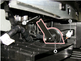 и звуковой сигнал высокого тона (B), отсоедините разъем (C) и снимите звуковой сигнал.