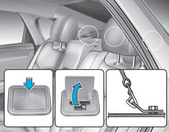 Держатели крючков для детских удерживающих устройств находится на лотке для пакетов.