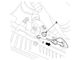Отсоедините трос переключения передач (А) от рычага переключения передач.