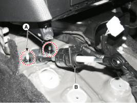 Снимите узел троса переключения передач (В), отвернув гайки (А).