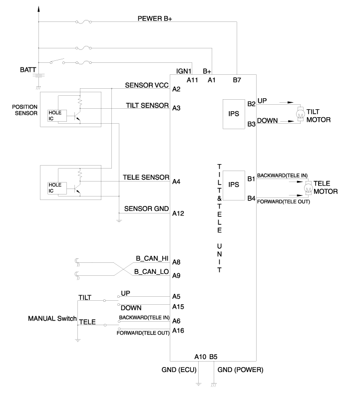 Hyundai Genesis: схемы IMS (интегрированная система памяти) / управления наклоном и телескопом (SCM)