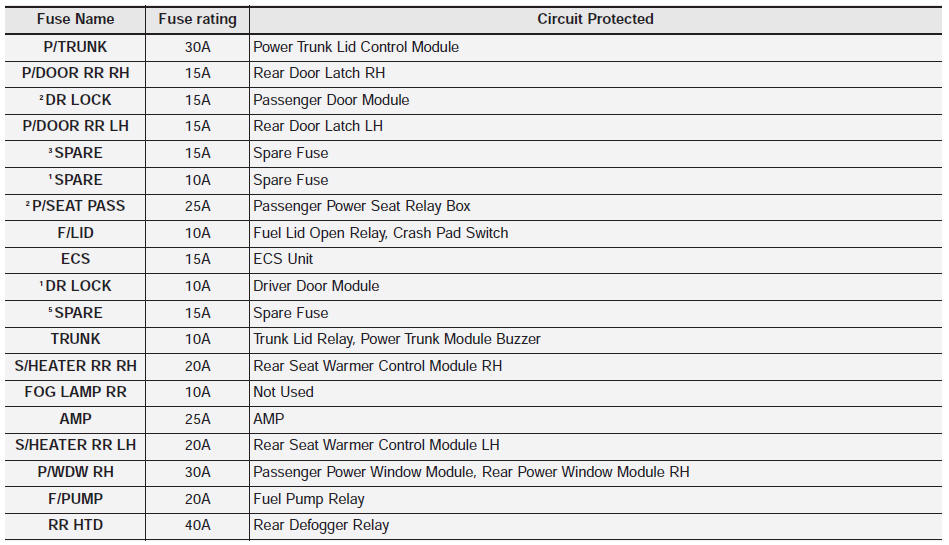 Hyundai Genesis: Описание панели предохранителей/реле / Панель предохранителей багажника