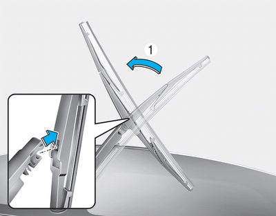 1. Поднимите рычаг стеклоочистителя и поверните узел щетки. стеклоочиститель (1).