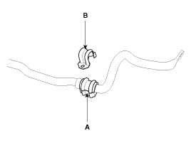 Снимите втулку стабилизатора поперечной устойчивости (А) и фиксатор (В).