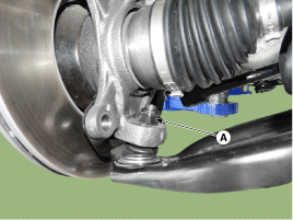 Ослабьте гайку (А) и отделите шаровой шарнир от нижнего рычага.