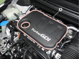 Снимите кожух двигателя (А).