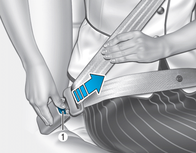 Чтобы пристегнуть ремень безопасности, вытяните его из натяжителя, затем вставьте металлический зажим (1) в пряжку (2). Вы слышите щелчок когда клип заблокирован в петле.