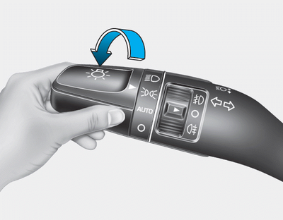 Чтобы включить свет, поверните кнопку, расположенную в конце управления в одно из следующих положений: