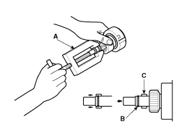 Отсоедините упорный подшипник (А), обгонную муфту (В), внутреннюю шестерню.