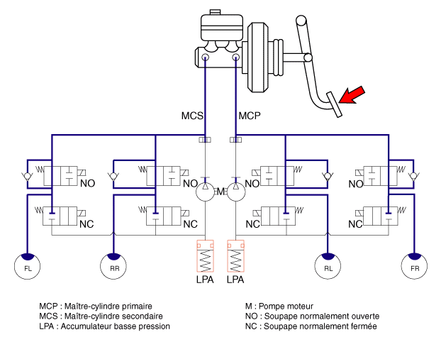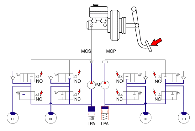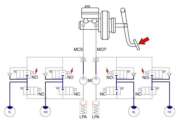 тормозной жидкости, затем напряжение питает каждый соленоид. Этот