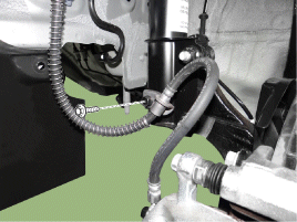 Снимите кронштейн датчика скорости вращения колеса (В), отвинтив