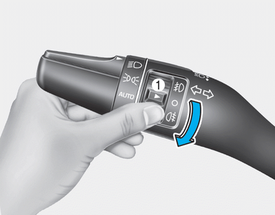 Установите переключатель в положение фар, затем поверните переключатель фонарь (1) в положение заднего противотуманного фонаря.