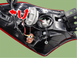 Замените лампу заднего комбинированного фонаря (А) после поворота