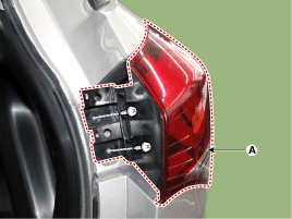 Снимите задний фонарь в сборе (А), предварительно открутив винты и