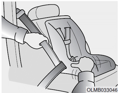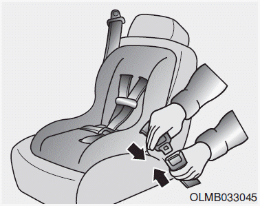 4. Нажмите и потяните детскую удерживающую систему, чтобы убедиться, что ремень безопасности удерживает его на месте.