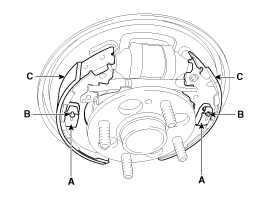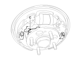 Отпустите педаль тормоза, затем снимите задний тормозной барабан.