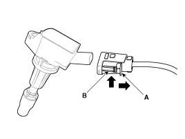 Снимите катушку зажигания (А), предварительно ослабив болты крепления.