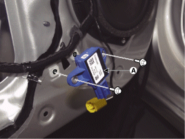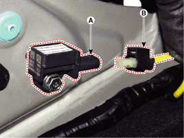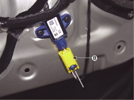Отсоедините разъем датчика бокового удара под давлением (B).