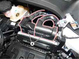 Снимите ECM (B), предварительно ослабив гайки крепления (A) блока управления двигателем.