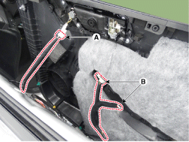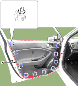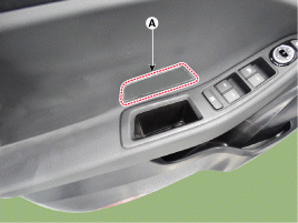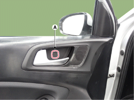 Подсоедините заглушку отверстия внутренней ручки передней двери (A).