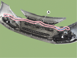 Снимите жгут проводов переднего бампера (А).
