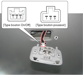 Снимите блок плафона освещения (А) после отсоединения разъема.