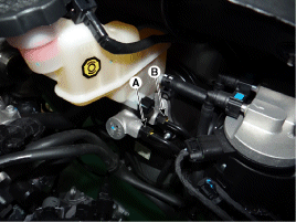 Снимите зажим и отсоедините тормозную трубку (А) от главного цилиндра.