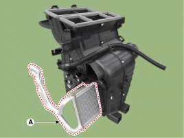Вытяните сердечник отопителя (А) из блока отопителя.