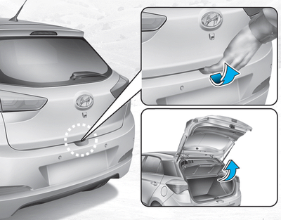Дверь багажника поднимается. Убедитесь, что никакие предметы или какие-либо никто не находится рядом с задней частью автомобиля, когда вы открываете задняя дверь.